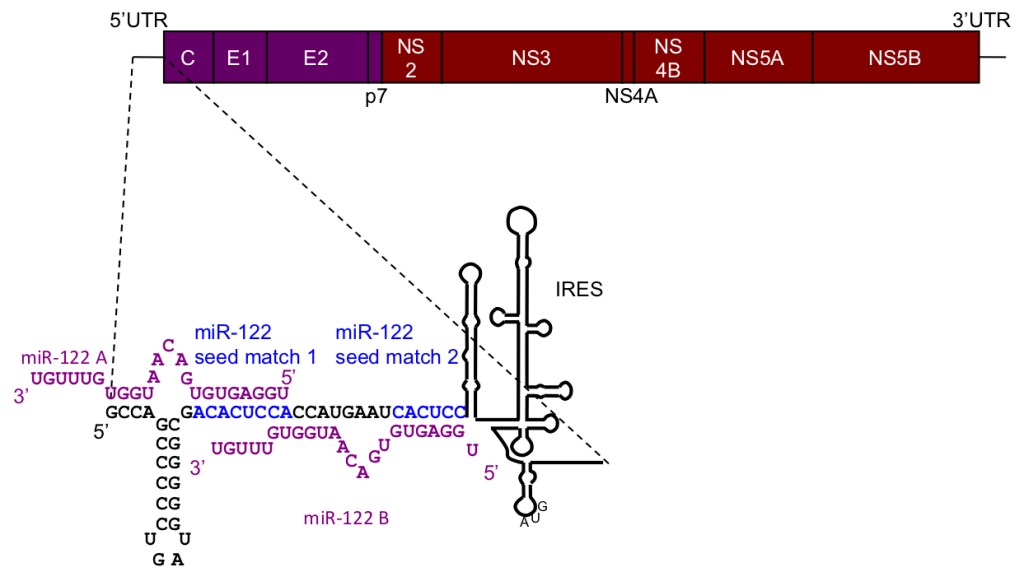 The mechanism by which miR-122 regulates HCV is still not fully understood. We are working to elucidate this mechanism by identifying the protein factors involved (Ahmed et al NAR 2018, Roberts et al NAR 2014, Roberts et al NAR 2011).